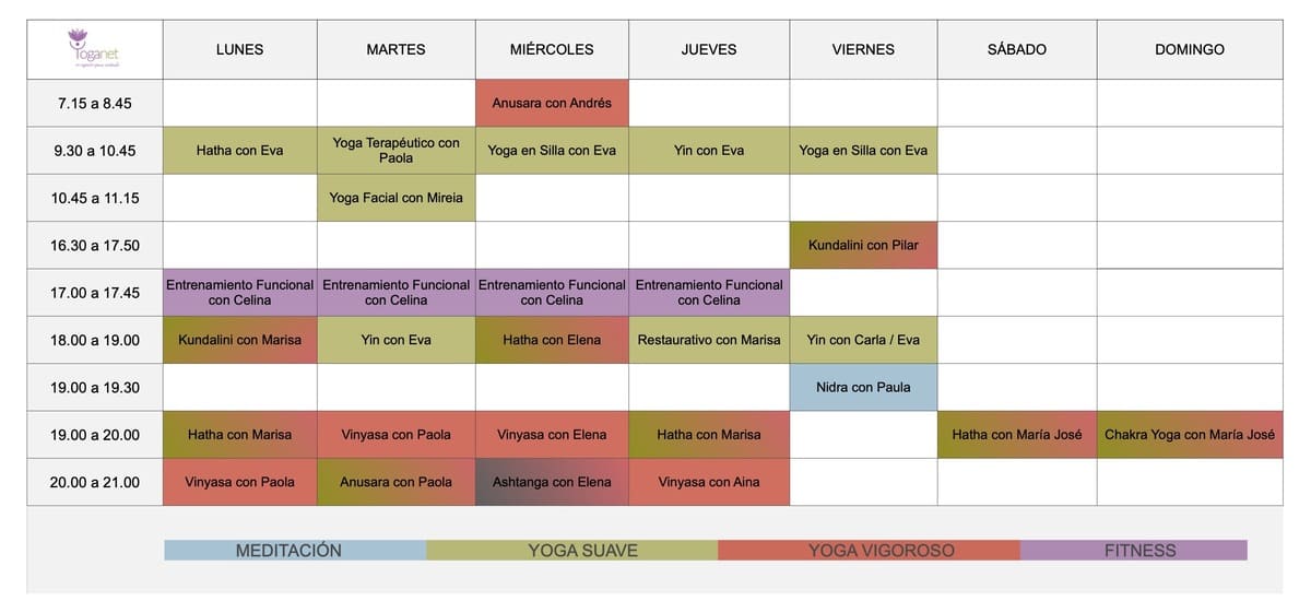 En Yoganet encontrarás distintos estilos, horarios y profesor@s. Descubre los que mejor se adaptan a tus necesidades.